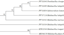 The isolate exhibited > 99% 16S rRNA -gene nucleotide identity to that of Modicisalibacter tunisiensis strain LIT2 (Class Gammaproteobacteria, Family Halomonadaceae) that was isolated from oil-field water in Tunisia21. The isolate also showed > 99% sequence identity to a 16S rRNA gene sequenced from an uncultured bacterium in San Juan Basin disposal site produced water (Silva accession number HQ893769). The members of the genus Modicisalibacter formed a distinct cluster from most closely related microbes in the genera Halomonas, Chromohalobacter, and Salincola, all members of family Halomonadaceae (Fig. 1). The isolate is tentatively designated as Modicisalibacter sp. strain Wilcox.