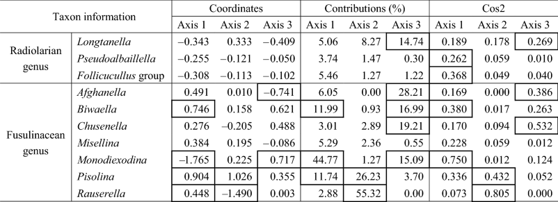 Table 3 Coordinates, contributions and Cos2 of the columns (genus) in the first three dimensions.
