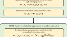 where \(\overline{{\varvec{m}}}({{\varvec{A}}}_{{\varvec{k}}})=\frac{{\mathbf{1}}}{{\varvec{n}}}{\sum }_{{\varvec{i}}={\mathbf{1}}}^{{\varvec{n}}}{{\varvec{m}}}_{{\varvec{i}}}({{\varvec{A}}}_{{\varvec{k}}})\) represents the average evidence, i.e. the overall expectation of the evidence.
