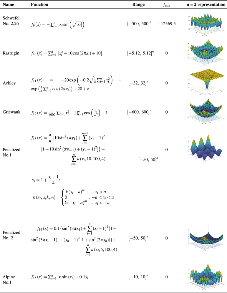 Table 8 Multimodal benchmark functions.