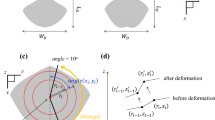 Based on these materials, four types of specimens were prepared as shown in Fig. 3a: “Flat cartilaginous” specimen with soft tissue and cartilages, “Sharp cartilaginous” specimen with soft tissue and cartilages which has relatively narrow width and large thickness, “Homogeneous soft” specimen consisting of soft tissue only, and “Homogeneous rigid” specimen consisting of randomly arranged cartilage materials in the soft tissue. In the specimen Homogeneous rigid, the amount and mass ratio of the materials are the same as those in the Flat cartilaginous and Sharp cartilaginous. Every specimen had the dimensions of 70 mm (width) × 70 mm (length) × 3 mm (thickness). The results of the bulk bending test are shown in Fig. 3b. The details of this experiment are explained in the Method section. The bulk stiffness values of each specimen obtained from the experimental data are expressed as the slope of a linear approximation curve, and summarized in Fig. 3c. The data showed that Sharp cartilaginous specimen has the largest stiffness among the samples (9.3 MPa), followed by Flat cartilaginous (7.1 MPa). Homogeneous soft and Homogeneous stiff exhibited lower stiffness: 4.4 MPa and 2.6 MPa, respectively. The bulk bending stiffness of Flat cartilaginous and Sharp cartilaginous in the transposed direction are 2.8 MPa and 3.0 MPa, respectively. These values are the close to the value of Homogeneous soft (2.6 MPa). The difference in the bulk stiffness modulus in the specimens was clearly correlated with the presence of the cartilage structure. This result also suggests that the anisotropy of stiffness is caused by the alignment of cartilages.