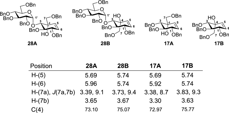 Table 3 Comparing the NMR shift values of compound 28A, 28B, 17A and 17B.
