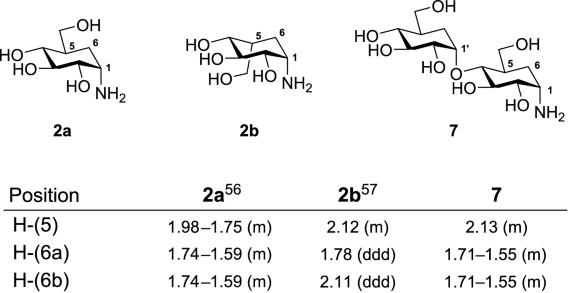 Table 4 Comparing the NMR shift values of validamine (2a), epi-validamine (2b) and 7.
