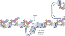 Cells were fixed with 1% formaldehyde in PBS for 20 min at RT, washed with 1× PBS, and lysed in 1% SDS, 50 mM Tris–HCl, pH 8.0, 10 mM EDTA at a density of 107 cells/ml. DNA was sheared into chromatin fragments < 1 kb using a Bioruptor Plus sonicator (Diagenode). After clearing of the lysates, 0.5-1 mg of protein was used per IP. Samples were diluted 10X with dilution buffer (0.01% SDS, 1.1% Triton X-100, 1.2 mM EDTA, 16.7 mM Tris–HCl, pH 8.0, and 150 mM NaCl) before addition of the indicated antibodies and incubation on a wheel overnight at 4 °C. Immunoprecipitates were pulled down with Protein-A/G coated magnetic beads (Invitrogen), and washed with 0.1% SDS, 1% Triton X-100, 2 mM EDTA, pH 8.0, 20 mM Tris–HCl, pH 8.0, containing 150 mM NaCl for the first two washes, and 500 mM NaCl for to additional washes. A final wash was performed with TE buffer. IP chromatin was eluted from the beads with 500 μl 1% SDS, 50 mM Tris–HCl pH8, 10 mM EDTA pH8. After addition of 20 μl of 5 M NaCl, crosslinks were reversed overnight at 65 °C. Samples were supplemented with 20 μg DNase-free RNase, and incubated at 37 °C for 30 min. DNA was extracted by phenol–chloroform and precipitated overnight at − 20 °C. For dot blots IP samples were then denatured at 95 °C for 5 min, snap-cooled on ice and dot blotted onto N + Hybond membranes in 2× SSC. Membranes were denatured with 1.5 M NaCl, 0.5 N NaOH for 10 min, then neutralized with 1 M NaCl, 0.5 M Tris–HCl, pH 7.0 for 10 min before crosslinking using a Stratalinker UV crosslinker (Stratagene) at 70,000 µJ/cm2. Telomeric probes 5′-(TTAGGG)4-3′ and centromeric probes 5′-GTTTTGAAACACTCTTTTTGTAGAATCTGC-3′ were radiolabeled by incubating 100 pmol of each with 50 μCi of 32P-ATP and 50 units of T4 Polynucleotide Kinase (Thermo Fisher Scientific) in 50 μl of 1× PNK buffer A for 1 h at 37 °C. The reactions were heat inactivated for 10 min at 75 °C and purified using the Micro Bio-Spin P-30 (Bio-Rad). The membranes were incubated for 30 min at 65 °C in Church Mix hybridization buffer (500 mM NaPi pH 7.2, 1 mM EDTA pH 8.0, 7% SDS, 1% BSA), and then overnight at 65 °C with 10 ml of hybridization buffer containing the radiolabeled probe. The membranes were washed 4 times in 2× SSC at 65 °C before exposure to a PhosphorImager screen. Signals were visualized with a Typhoon phosphorimager and quantified with ImageJ software. For qPCR IP samples were resuspended in 30 μl of TE buffer. Telomeric DNA was detected using primers as described in Ref.43.
