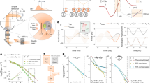 Another parameter that can be derived using the APC approach is the friction retardation spectrum \({\tilde{\gamma }}(\omega )\), whose imaginary part is zero for a purely viscous fluid such as water. Its real part \(\gamma '_{APC}\) is expected to match the theoretical value \(\gamma '_{Theo} = 6 \pi \eta R\) which is defined accordingly to Stoke’s law for spherical microbeads in a viscous fluid, where \(\eta \) is the fluid viscosity and R is the radius of the microbead. Figure 2b shows the comparison between the experimentally derived \(\gamma '_{APC}\) and the theoretical value \(\gamma '_{Theo}\) for driving frequencies between 10 and 400 Hz. The black dashed lines represent the uncertainty of the theoretical value, which is mainly due to temperature and bead size uncertainty. In accordance with the results for the trap stiffness, experimental and theoretical values of the friction retardation spectrum agree within error bars for both the single-frequency and the multi-frequency driving signals.