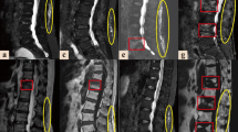 Pre- and postoperative images from two representative cases are shown in Fig. 1. Case 1 was a 74-year-old female (Hoehn & Yahr stage III) who presented with severe low back pain and a cauda equina sign (motor paralysis in both lower extremities) due to rapidly progressing L3 collapse within 3 weeks after injury. Vertebroplasty and PS fixation were performed, but PS loosening in upper segments occurred at 3 weeks after surgery with exacerbation of dyskinesia. The patient was able to maintain daily activities with only mild low back pain at 5 years after surgery, although decreasing lumbar kyphosis was observed after PS removal. Case 2 was a 70-year-old female (Hoehn & Yahr stage II) who presented with severe low back pain and a cauda equina sign (motor paralysis in both lower extremities) due to progressive L4 collapse. Anterior reconstruction and PS fixation were performed, and the patient has been asymptomatic for 3 years after surgery without instrumentation failure.