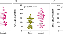 Recently, certain involvement of various lncRNAs, such as lnc-MALAT1 and apoptosis-related lncRNAs (CCAT2, TUG1, PANDA, NEAT1, FAS-AS1, and OIP5-AS1), was reported in BD18,19,20,21,22. However, these studies did not focus on the role of lncRNAs in the pathogenesis of BD. LncRNAs are transcripts with a length of more than 200 nucleotides that play a complex regulatory role in gene expression by acting as guides or decoys for other RNAs or by directly binding to DNA23,24. The results of the present study demonstrated that NR_028138.1 was expressed at a higher level in the BD group compared with that in the control group. Furthermore, ROC curve analysis showed that AUC for NR_028138.1 was 0.92 (90.3% sensitivity and 98% specificity). This diagnostic model was confirmed in 70 individuals in the second step of the validation and had AUC 0.890 (95% CI: 0.818–0.962; P < 0.0001). RNA sequencing data and miRNA target prediction software miRDB and TargetScan were used to construct a ceRNA regulatory network to determine potential functions of NR_028138.1. These results suggested that NR_028138.1 was significantly and independently associated with BD.