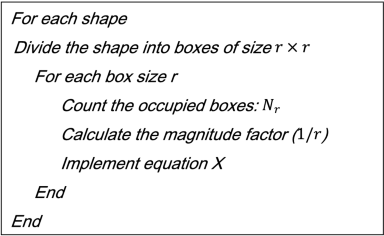 Table 1 Pseudocode for the box-counting approach for calculating fractal dimensions.