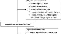 Inoue, E., Yamanaka, H., Hara, M., Tomatsu, T. & Kamatani, N. Comparison of Disease Activity Score (DAS)28-erythrocyte sedimentation rate and DAS28-C-reactive protein threshold values. Ann. Rheum. Dis. 66, 407–409. https://doi.org/10.1136/ard.2006.054205 (2007).