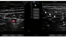 Two common techniques for ABPB are the perivascular (PV) and perineural (PN) techniques. Several studies on the PV technique found that complete block can be successfully achieved with one injection near the axillary artery, with a faster onset, a lower dosage, and less discomfort and pain13,14,15. The block method used in the trial was a combination of the PV and PN techniques. We selected a single injection of anaesthetic next to the axillary artery near the innervation site for the surgical incision to achieve ABPB. Under ultrasound guidance, the tip of the puncture needle was positioned as close as possible to the axillary artery while avoiding vascular damage or intravascular injection. Satisfactory injection efficacy was achieved if the anaesthetic solution was concentrated at the site of action, if the nerve was effectively surrounded by the solution, and if the axillary artery was compressed, indicating that the anaesthetic solution was accurately injected into the axillary artery sheath. Using a smaller volume can result in an effective block, and the local anaesthetic can even diffuse to the superior side, which may block the proximal end of the musculocutaneous nerve. The musculocutaneous nerve does not innervate the hand. Consequently, we did not administer anaesthetics to the musculocutaneous nerve.