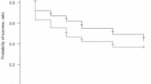 Spike occurrence in TMH and LOT were 6% and 26%, respectively, in our study. The difference in spike occurrence was significant between the TMH and LOT groups (p = 0.005). Spike occurrence in the ab externo method was 24% (50 eyes), 8% (59 eyes) and 7% (44 eyes) in the studies by Mori et al., Kinoshita et al. and Chihara et al., respectively18,29,30. Spike occurrence in the ab interno method was 36% (50 eyes) and 4% (68 eyes) in the studies by Mori et al. and Tanito et al., respectively16,18. Our results were comparable with those of the previous studies. The occurrence of spike may be influenced by some factors. One of them is the definition of spike. The definition of Tannito et al. was IOP elevation over 30 mmHg16. Chiahara et al. defined spike as a sharp IOP elevation over 10 mmHg in 3 days29. Our definition was IOP elevation over 30 mmHg. Additionally, because it is difficult to monitor postoperative IOP continuously, we may not have detected the actual IOP spike. The occurrence of spike with hyphema was significant difference in the current study (p = 0.04). The relationship between IOP elevations similar to spikes and red blood cells similar to hyphema had been discussed32,33,34. These reports suggested the possibility that IOP elevation occurred because degenerated red blood cells blocked the flow at the trabecular meshwork. Xu et al. showed that the mean IOP elevation at 48 hours after hemorrhage was 46.5 mmHg34. Our cases may also have a spike and an IOP elevation with a mechanism similar to that in previous reports. The amount of hyphema may be related to the difference in surgical procedure. In the case of TMH, the anterior chamber temporarily becomes high IOP during anterior chamber washout after cleaving trabecular meshwork, which can aspirate reflux hemorrhage from the episcleral vein and push away hemorrhage in the collector channel. By contrast, the reflex hemorrhage may not have been sufficiently washed out in cases of LOT because the pressure tends to escape due to aqueous humor flowing out of the scleral flap. Therefore, it may be possible that TMH had less spikes due to less reflux hyphema. In our study, there were no eyes needing additional procedure for postoperative complications during the follow-up period.
