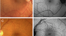 We re-examined all the related patients from our single French family carrying the pathogenic variant c.113G > A (p. Arg38Gln) in SSBP1 gene. Age of onset, initial symptoms, best-corrected visual acuity with Snellen charts, 15-Hue desaturated color vision test, Goldmann visual fields, fundus photography (Nidek non-mydriatic automated fundus camera, AFC 330, Nidek Inc, Japan), infrared and autofluorescence imaging (Combined Heidelberg Retina Angiograph), spectral domain optical coherence tomography with retinal nerve fiber and macular analyses (Combined Heidelberg Retina Angiograph, Spectralis OCT device, Heidelberg Engineering, Dossenheim, Germany) were reviewed. The scan program used a 20° × 20° macular cube centered on the fovea included 97 high-resolution scans with 5 frames per scan and high-resolution horizontal scans with at least 50 frames per scan (ART mean). The foveal thicknesses and the automated ETDRS grid thicknesses (center, 1 mm, nasal 3 mm, superior 3 mm, temporal 3 mm, inferior 3 mm) were reviewed. The Heidelberg RNFL program was selected (3 acquisitions, circle 12°, ART 100). These tests allow us to correctly classify patients with the SSBP1 pathogenic variant into four groups: (1) asymptomatic patients with no abnormalities, (2) patients with isolated neuropathy, (3) patients with neuropathy and foveopathy and iii. patients with RCD.