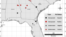 We found no evidence that temperature or humidity influenced infection response in P. subflavus in this captive hibernation experiment. Why so few bats got infected from experimental inoculation with the fungus is unclear. Nearly two-thirds of the bats showed no signs of Pd infection at the end of 83—87 days of captive hibernation (Table 1, Fig. 2), despite being experimentally inoculated with Pd using the same protocols as Pd infection trials on little brown bats8,9,15,32,33,37. The lack of observed infection response from experimental inoculation was an unanticipated outcome and contrasts with extensive evidence that P. subflavus in natural hibernation environments experience high Pd prevalence, high Pd fungal loads, and decline precipitously once Pd invades and establishes in hibernacula11,12,14,20,21,23,24,51,52.