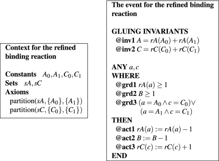 Table 2 Size-preserving refinement of a binding reaction in Event-B.