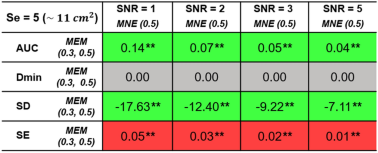 Table 2 Reconstruction performance comparison of MEM and MNE with different SNR levels.