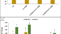 The experiments based on plant were performed in accordance with international guidelines and regulations. The experiments had been comprised into in six groups. The control group was treated with tap water, application groups were treated with curcumin (5 and 10 mg/L), EC50 concentration of pendimethalin (12 mg/L) and their combination at 24 °C for 96 h (Table 1). The roots were exposed to the treatment solution directly in 60 × 42 mm beakers. About 40 bulbs from each group were used for physiological study and 10 bulbs were selected randomly for cytological and biochemical studies.