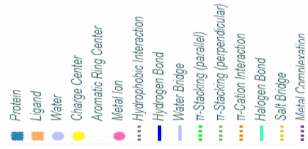 Hydrogen bond | Hydrophobic interactions | Halogen/salt bridge | π-Stacking | |||||