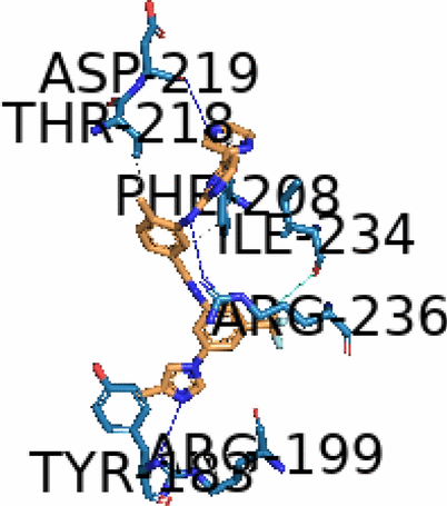 USP53 | − 9.5 | ARG199, ASP219, ARG236 | TYR183, PHE208, THR218 | ILE234 | PHE208 | |||