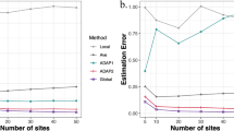 Note that we assume the first site is the lead site when constructing the surrogate likelihood. In practice, if any site can serve as the lead site, we recommend using the largest site for this purpose. Alternatively, after the derivatives \({\nabla }^{\mathrm{r}}{L}_{j}\left(\overline{\beta }\right), r=\mathrm{1,2}, j=\dots ,K\) have been shared across sites, each site can serve as the lead site and obtain its own surrogate estimate. These surrogate estimates can be further synthesized to obtain more accurate estimation.