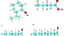 Because eutectic solvents have been widely used in the isolation of pollutants from aqueous solutions, it is critical to investigate their thermophysical and structural properties at different temperatures. Because DES properties are controlled by nanoscopic factors, understanding the nanoscopic factors enables tuning of molecular properties to achieve the desired macroscopic properties13. Molecular dynamics simulation is a valuable tool, which would provide insight into the eutectic mixtures at the molecular level in modern chemistry and chemical engineering14. Therefore, can a suitable appropriate in connecting nanoscopic features to macroscopic physicochemical properties. However, the parameters (e.g., in the CHARMM force field) that are mandatory to design of FAs molecules and predict their physicochemical properties are not reported. As a result, in the present study the force field parameters and partial atomic charges were computed using quantum calculations. QM optimizations of force field parameters were considered for MD simulations. We were particularly interested in the effect of the percentage composition of species and temperature on the dynamic and structural properties of the eutectic solvents based on menthol and fatty acid (see Supplementary Table S5). The intermolecular interactions that can be used to predict macroscopic physicochemical properties have been identified. The structural and dynamic properties of eutectic solvents can provide a valuable insight inro the intermolecular interactions that can cause a significant drop in the melting point of the binary mixtures.