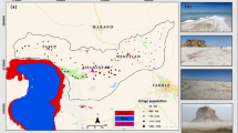 Lake Urmia is one of the most hyper-saline and well-known drying (and even dying) lakes. It has been drying up since 2000. The lake, at an elevation of 1286 m above mean sea level and with an area of 5000 km2, is located in north-western Iran (Supplementary Fig. 1). Lake Urmia and its watershed are critical in the daily life of millions of people as well as 226 species of birds and other animals. The Lake Urmia Basin (LUB), with an area of 51,876 km2, hosts agricultural areas for FP and industrial activities. Extensive plains and fertile agricultural farmlands surrounding the lake have made LUB one of the most critical areas for food production and animal husbandry in Iran. According to the Iranian Ministry of Agriculture9, with about 500,000 hectares** of farmlands (360,000 croplands and 140,000 orchards), the LUB accounts for 8.4% of the total area of farmland in Iran. There are 42 cities and 520 villages in the LUB, according to the National Statistics Center of Iran10. Based on the latest Iranian census (2016), 7.3 million people live in the LUB, which is about 9.2% of Iran’s total population. Due to climate change and intensive land use/cover changes (LUCC), the lake has lost about 65–85 percent of its surface area since 2000, increasing the expanse of flat salty areas2. Aside from changing climate conditions, inappropriate irrigation practices and extensive anthropogenic pressure are further factors contributing to the drying up process, leading to drastic changes to the ecosystem of the LUB. The gradual drying up of the lake and associated environmental changes are also anticipated to lead to salt and dust storms, and extensive soil and water salinization. Such major environmental issues will threaten public health and the FP in the coming decades. From the environmental perspective, it is believed that a reduction in the lake’s water level will lead to the formation of salt domes and intensify desertification, thereby threatening the productivity of the nearby farmlands through soil and water salinization. As with other drying lakes, there is also great concern that the lake will completely dry up in the future (see Supplementary Fig. 2 as an example).