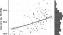 Strong evidence was found supporting our hypothesis that social capital indices are strong, significant predictors of COVID-19 spread rates. Across counties, communities with stronger bonding social capital see lower rates of COVID-19 spread. Recent research on matched samples of US counties showed similar results, where bonding social capital seemed to help families and friends shelter and reinforced norms to wear masks and physical distance22. This largely confirms the trends found in past studies10,12, including those which use robust metrics like excess death rates22. It is worth noting that overall, when analyzed descriptively in Fig. 6’s scatterplots, each type of social capital was negatively correlated with COVID-19 spread.