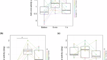 Saliva samples were collected in a quiet room during the morning, between 09:00 and 10:00, and at least 60 min after eating. Subjects were asked to accumulate saliva in their mouths and spit into a sterile plastic dish at the desired time or indicated time, and saliva samples were collected for 5 min in Study 1 or 10 min in Study 2. The saliva secretion rate (mL/min) was calculated by dividing the amount of saliva collected at the time of collection. Whole saliva samples were centrifuged at 15,000 rpm for 15 min at 4 °C. The supernatant was collected and stored at − 80 °C until use. Frozen saliva samples were thawed and vigorously mixed by vortexing prior to the assay.