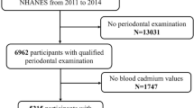 Cadmium has been proven to cause numerus adverse effects in humans via several pathways, including increased oxidative stress, impairment of the antioxidant response, enzyme inactivation, and multiple organ damage3. However, the mechanism between cadmium and folate status was unclear, and we tried to propose several possible hypotheses for it. First of all, cadmium was found to be absorbed via metal transporters in the intestinal, accumulating in the intestinal as cadmium exposure increased19, and rising animal studies found that cadmium would cause gut microbiome damage20,21,22. On the other hand, folate is primarily absorbed from the diet through the intestinal tract, and oxidative stress may interfere with the gut microbiome, resulting in folate deficiency23. They implied that cadmium accumulation in the gut might cause gut microbiota damage via ROS generation and increased oxidative stress, consequently, resulting in folate malabsorption. Second, Cd2+ was a predominant and competitive inhibitor of the enzyme24, and it could bind to numerus protein with the sulfhydryl group(-SH), leading to protein inactivation. Cadmium might interfere with the enzymes of the folate cycle, and it needs more studies to investigate the details. Third, it was well recognized that several heavy metals exert their toxicity through similar pathways. As for epigenetic effect, cadmium and arsenic (As) were both correlated with DNA methylation, and specific histone modification marks25,26,27,28. Abuawad et al. summarized the important relationship between one-carbon metabolism and arsenic methylation. Folate, as a crucial factor in one-carbon metabolism, has been proven to improve arsenic methylation capacity and to further promote arsenic elimination29,30. Although the mechanism of the elimination of cadmium was unclear, it might have had a similar pathway between one-carbon metabolism and cadmium. Finally, cadmium has been proven to be carcinogenic, and it could affect several transcription factors, such as activator protein 1 (AP-1), nuclear factor-kappa B (NF-κB), and p53. Hence, uncontrolled cell growth and division would happen due to a failure in the control of the expression of protective genes31. It might increase the requirement for folate due to abnormally increasing cell proliferation, and this hypothesis requires more research to confirm it.