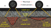 Expansive subgrades lie mostly in the central and the western part and cover more than 15–20% of India's geographical area10,11. Expansive subgrades are also known as weak subgrades because upward swelling pressure increases the expansive subgrades' moisture content, causing failure. The expansive subgrades engineering properties are improved using several reinforcing methods. Numerous counteracting methods are developed to control the swelling-shrinkage behavior of the expansive subgrades12,13,14,15,16,17,18,19. Geogrid reinforcement is another widely used method to improve the engineering properties of weak subgrades20,21,22,23. The geogrid improves the engineering properties of the foundation by mechanical stabilization24,25,26,27. Several studies have been carried out to understand the geosynthetic reinforced expansive subgrades behavior21,28,29,30,31,32. The use of geogrid improves the service life of the pavement structure by reducing the reflective crack and reinforcing the subgrade materials33,34,35,36,37,38. The study carried out by Jahandari et al.39 presented the long-term performance of the geogrid reinforced expansive subgrades and showed sustainable use of the geogrid to reinforced the lime treated expansive subgrades. Similarly, Chenari et al.40 studied the combined effect of geogrid and expended polystyrenes (EPS) to improve the cyclic interface behavior of reinforced expansive subgrades. The long-term performance analysis of geosynthetic reinforced expansive subgrades has been studied by Roodi and Zornberg24 and shows the method has cost-effective and sustainable.