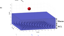 It can be seen from Table 2 that the deposition rates of oral cavity A, throat B, and lung C were 53%, 9%, and 38%, respectively. Experimental results also revealed that the emitted dose generated by SAW atomization accounts for 70% of the theoretical dose. The remaining (< 30%) drug loss was mainly due to thermal effect precipitation on the device substrate, which is in complete agreement with the literature results12. Increasing the input power can increase the atomization rate, but it will raise the aerodynamic size of the drug, enhance the thermal effect, and then reduce the efficiency of the SAW drug delivery device. Figure 13 shows the deposition rate of the lung area at 5.26 W input power with different device frequency versus different flow rates. Note that under the action of a frequency of 30 MHz, the deposition rate of the lung area gradually decreases with the increase of flow rate. When the flow rate reaches 270 μl/min, it exceeds the atomization rate of 266 μl/min under 5.26 W input power27. At this time, the deposition rate of salbutamol particles in the lung area was only 8.1%. This was consistent with the accumulated volume fraction of the aerosol size less than 6.4 μm measured by the laser diffractometer at the same input power, as shown in Fig. 8, which verifies the accuracy of the experimental scheme. It should be noted that the flow rate of 90 μl/min was already the minimum flow rate under the action of this power. If the supplied rate continues to decrease, it will lead to the discontinuous state of atomization. Simultaneously, reducing the flow rate will increase the atomization time, which will cause various discomfort for patients, so it was challenging to meet the requirements of drug atomization inhalation. At a frequency of 60 MHz and flow rate of 90 μl/min, the deposition rate reaches 57%. In this case, the thermal effect of the device was reduced, the corresponding SAW administration efficiency was improved, and more than 80% of the drug could be delivered into the respiratory system. If the device frequency was increased to 90 MHz, the atomization rate was only about 60 μl/min at the same power, which was challenging to meet the requirements of atomization inhalation. However, increasing the atomization rate requires increasing the input power, which was accompanied by a series of problems such as further heating the device and the increase of aerosol drug particle size, so this part of the experiment did not continue. Therefore, we can conclude that the device should be operated at a frequency of 60 MHz, an input power of 5.26 W, and a flow rate of 90 μl/min, such that the dose ratios across the various criteria were maximized.