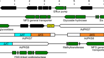 Kimura, N. & Tsuge, T. Gene cluster involved in melanin biosynthesis of the filamentous fungus Alternaria alternata. J. Bacteriol. 175, 4427–4435 (1993).