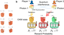 Decision making using photonic technologies has been widely demonstrated9,10,11,12,13,14,15,16,17,18,19,20,21. For example, chaotic temporal waveforms generated by semiconductor lasers have been used, where the threshold level of the temporal waveform can be controlled9,10,11,12. Furthermore, mode competition dynamics in a ring–cavity semiconductor laser on a chip has been utilized to solve two-armed bandit problems (i.e., problems with two slot machines)13. The lag synchronization of chaos in mutually coupled semiconductor lasers has been used for decision making14, and this approach has been extended to laser networks with a large number of slot machines15,16. Furthermore, single17,18 and entangled19,20,21 photons have been utilized for photonic decision making.