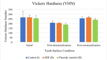 Akyildiz, M. & Sönmez, S. Comparison of remineralising potential of nano silver fluoride, silver diamine fluoride and sodium fluoride varnish on artificial caries: an in vitro study. Oral Health Prev. Dent. 17, 469–477 (2019).