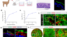 Tracheobronchial epithelial cells from Bactrian camel and llama were isolated from post-mortem tracheobronchial tissue, obtained in collaboration with the veterinary hospital of the University of Bern that euthanized their animals for diagnostic purposes. Isolation and culturing were performed as previously described16. Modifications to the composition of the ALI medium were introduced, in which the concentration of the EGF was increased to 5 ng/ml. Both camel and llama ALI cultures were maintained at 37 °C in a humidified incubator with 5% CO2. During the development of differentiated camelid ALI cultures (3–4 weeks), media was changed every 2–3 days. During the ALI differentiation stage, inserts were fixed at 7-day intervals from the day of ALI exposure to 4-week post-ALI to monitor the development. TEER resistance was measured every 7 days.