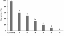 Soluble protein extracts (2 mg ml−1) were prepared from approx. 50,000 eggs collected at each time point (0, 5, and 10 days post laying) by mechanical homogenisation on ice in 0.1 M Tris/HCl, pH 7.3, containing 1% CHAPS, followed by sonication (Biologics 150 VT, 3.8 mm micro tip, 30% amplitude, 25% pulse, 15 min). The extracts were cleared by centrifugation (16,000×g at 4 °C for 45 min) and stored at − 80 °C before use. Protein concentration in the prepared extracts was determined using Quaint-iT™ Protein Assay Kit (Life Technologies).
