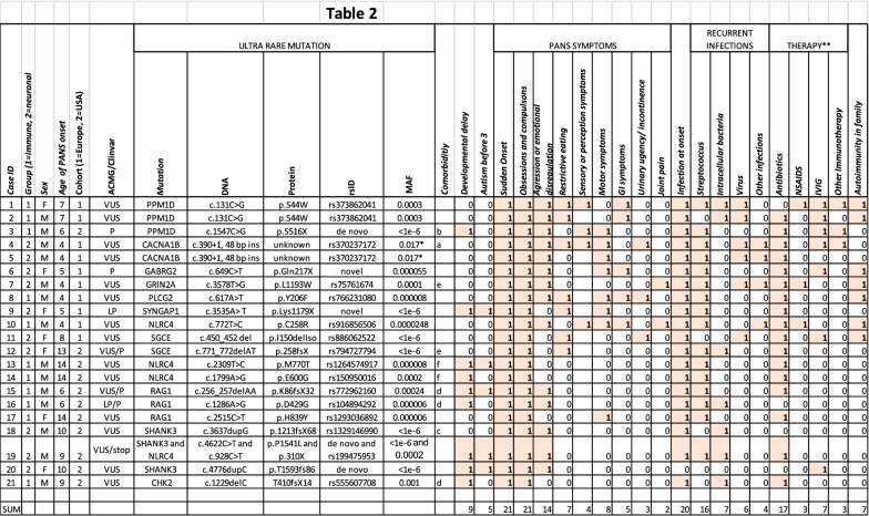 From: Identification of ultra-rare genetic variants in pediatric acute onset neuropsychiatric syndrome (PANS) by exome and whole genome sequencing