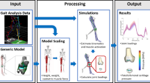 A well-established weight bearing knee rig15,16,17,18,19,20 which performs a squat from 30° to 130° moving 3°/s, was used for testing. To measure the flexion angle, two angular sensors (8820, Burster, Gernsbach, Germany) placed at the hip and ankle joint were used. For each of the three bone segments of the knee joint, the movements of four bony landmarks were recorded with an ultrasonic measurement system (Zebris CMS20, Isny, Germany). These landmarks allow the mapping of the anatomic reference frames to the femur, tibia and patella bones.