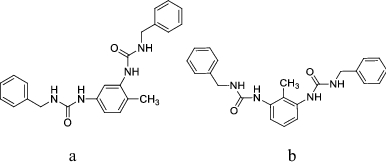 2 | TDI/BA-2 | a. 1,1′-(2-methyl-1,3-phenylene)bis(3-benzylurea) b. 1,1′-(2-methyl-1,5-phenylene)bis(3-benzylurea) |