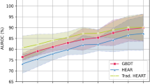 While several studies have demonstrated the efficacy and feasibility of risk stratification for ACS with combined modalities such as 12-lead ECG and biomarkers in the emergency department12,13,14 and prehospital setting2, there are few reports predicting the onset of ACS according to vital signs, ECG monitoring, and symptoms obtained by EMS personnel. A prehospital stroke scale with physical examination has been15 designed to be accessible and applicable for EMS personnel initially triaging patients with limited information, but the conventional scoring system for suspected ACS requires 12-lead ECG and cardiac troponin in addition to medical history13. A previous study16, which compared diagnostic accuracy for ACS between an assessment of general practitioners and clinical decision rule (CDR) based on medical history and physical examination, reported that the AUC was 0.66 for the physicians’ risk estimate and 0.75 for the CDR. This result implies that the diagnostic precision for ACS based on physical assessment reaches the ceiling when 12-lead ECG or cardiac enzymes are not available. In this context, our novel approach for predicting the onset of ACS with vital signs, ECG monitoring, and symptoms using machine learning would provide us with substantial advantages over traditional methods.
