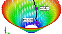 To model the interaction between the gold atoms in the substrate, the EAM potential was applied33. This potential was developed using density functional theory, which is recognized as one of the most accurate potentials for mimicking Au and other FCC metals so far. This potential has been shown to accurately replicate the vacancies and disorders in \(\mathrm{Au}\) substrates, and the dislocation structures predicted by this potential match with experimental observations properly. Simulations were performed using LAMMPS software34, and the results are envisioned by operating the VMD package35. Before starting the simulation, the system was relaxed for 200,000 steps, and then, the simulation was performed for \(8 ns\) considering \(1 fs\) time steps to attain accurate results. The velocity Verlet algorithm was used to integrate the equations of motion with a \(1 fs\) time step. It is worth mentioning that \(Tdamp\) is set to \(50 fs\) in the LAMMPS software for NVT ensemble as well36.