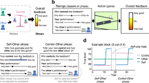 Effects of promises and social closeness on the decision to reciprocate with trustors (pay back) were evaluated using a multilevel model with a binomial error distribution28, which was programmed in R with the lme4 package54. To model the decision to pay back, the next categorical predictors were included as population-level effects (fixed effects): promises (with two levels: without promises/with promises), social closeness (with three levels: computer/stranger/friend), and the interaction promises by social closeness. The post hoc differences between trustors were analyzed using p-values adjusted with Tukey correction. The model also included the effect of social closeness at the individual level (random effects), to consider within-subject variability. The responses to the IOS scale were analyzed with a Pearson correlation to determine the association between the social closeness of the participant and their friend. Furthermore, to explore differences in experienced social closeness towards the different trustors, we computed two repeated measures ANOVA’s with the afex R package55, one of the analyses was for the participant's responses towards their partners (computer, stranger and friend) and a second analysis for the friend's responses to the participant, the stranger, and the computer.