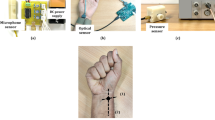 Two ballistic devices generating radial pressure waves were evaluated in this study: DolorClast Radial Shock Waves with Blue handpiece and 15 mm applicator (EMS Electro Medical Systems S.A., Nyon, Switzerland) (DUT1) and MasterPuls 200 Ultra with Falcon handpiece and 15 mm applicator (Storz Medical AG, Trägerwilen, Switzerland) (DUT2). The influence of the PRR on the pressure curves and the surface velocity of the applicators was determined. The pressure curves were measured in a hybrid test bench according to the IEC 63045:2020 standard. The test setup was described previously10. Measurements were conducted using a fibre optic pressure hydrophone (FOPH 2000, RP acoustics e.K., Leutenbach, Germany), which was positioned in an angle of 45° to the beam axis. The ballistic devices were coupled to a small water bath using a 1 mm latex membrane and ultrasound gel (Fig. 1a). The ultrapure degassed water had a temperature of 23.1 ± 0.7 °C. The contact pressure was applied using a preloaded spring. For each device, different pressure levels driving the projectile were investigated: 1, 2, 3, 4 bar. For DUT2, the maximum pressure level of 5 bar was examined additionally. The pressure curves were measured at PRRs of 1, 5, 10, 15 and 20 Hz as well as the maximum PRR of each device (DUT1: 25 Hz, DUT2: 21 Hz).