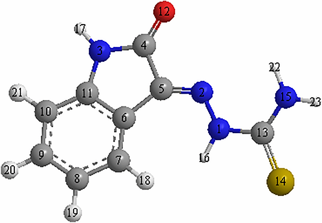 Table 6 Mulliken atomic charges for the corrosion inhibitor.
