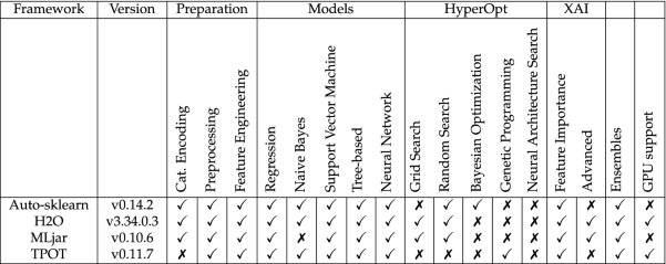 Table 3 Features of the applied AutoML framework.