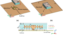 The proposed dielectric polarizer is designed to have a rectangular shape in order to ease the integration with the array. The volume fraction of the relatively high permittivity material is \(v = 0.55\), and the periodicity of the dielectric strips is \(p = 2\) mm, resulting in the values of permittivity \(\varepsilon _{||}\) = 7.95 and \(\varepsilon _{\perp }\) = 5.106. To get 90\(^\circ\) of phase shift the thickness l must be calculated using Eqs. (4) and (5), where \(\tau _{1,2}\) and \(\rho _{1,2}\) are the transmission and reflection coefficients in the first and second interfaces of the dielectric slab calculated for the parallel or perpendicular polarization, and \(\beta _{||,\perp }\) is the phase constant of the dielectric material also for each polarization. This lead to a fixed thickness of \(l = 3.4\) mm.