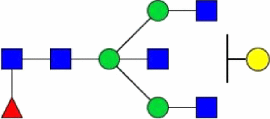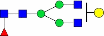 Glycopeptide | Glycan structure | Mass [m/z] | CS [z] | Polarity | Start (min) | End (min) | NCE | Transitions |