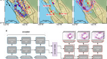 A partial differential equation (PDE) can be viewed as a differential operator L mapping a function g to the function f, i.e. Lg = f. This is the forward problem where the operator L in this case is the elastic wave equation. The inverse case is where the inverse operator L−1 maps the function f to the function g. We can automatically link the operator equation with the equation Gm = d where the elastodynamic Green’s functions G for a given Earth model m produce the seismic data d and the inverse relation G−1.d = m generates an Earth model m given the data and the inverse Green’s functions, G−1. In our specific case, the application of L determines G for a specific model m. Neural networks are a mapping from an input vector space to an output vector space or an input image vector to an output image vector which is an equivalent representation of the differential operator above and, in theory, can learn to predict the operator or inverse operator given appropriate input training data. The FNO network was the first network to model turbulent flows and was used to predict results from the Navier–Stokes equation, Burger’s equation and Darcy’s equations28. Recently, it has been used to predict two phase flow in the subsurface given a subsurface model and initial conditions31. The FNO has some distinct advantages over other networks such as convolution neural networks (CNN) that make it readily adaptable to learning differential operators. The method is resolution and mesh invariant hence it can take a low resolution input training dataset and predict higher resolution outputs on arbitrary meshes. The convolution in the CNN is replaced by a multiplication in the Fourier domain and this has some advantages. The first is the compute complexity of a convolution versus the fast Fourier transform, making the FNO more computationally efficient. PDEs are continuous and the global nature of the Fourier space is more suited to capturing this continuity versus the local convolution kernels in a CNN. Additionally, higher frequencies can be truncated without significantly impacting the solution, which is in essence a compression routine, increasing the compute efficiency. In practical terms for this work, large volumes of synthetic seismic data are generated using a partial differential solver given an input model. This can be considered as the ‘observed’ data. The FNO is trained using this dataset for both the forward and inverse problem. When subsequently applying the trained FNO for the forward problem, the network takes the models as input and predicts the expected elastic wavefields and synthetic seismograms. When applying the FNO for the inversion network, the input is the ‘observed’ seismograms from a previously unseen simulation in a specific earth model of interest (equivalent to observed data), and the prediction is that specific velocity model. The FNO prediction output is orders of magnitude faster than running a PDE solver, but the generation of the training data and the FNO training itself does incur a significant upfront computational cost, dependent on the problem.