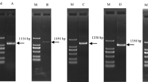 To test the specificity of each pair of primers, we first performed RT-PCR in a 50 μL system using a PCR instrument (Eppendorf AG, Hamburg, Germany), including cDNA 4 μL synthetic CDNA (100 ng), 2xPCR Mix 25 μL(Tiangen), 2 μL each of forward and reverse primer (10 μM), and ddH2O 17 μL. The amplification procedure consisted of an initial denaturation of 95 °C for 4 min, followed by denaturation at 95 °C for 30 s; annealing at 60 °C for 30 s; extension at 72 °C for 30 s in 30 cycles. The final extension at 72 °C for 5 min. The PCR products were detected by 2.0% agarose gel electrophoresis. They were recovered by agarose gel DNA recovery kit (Tiangen), and sequenced to verify the primers’ specificity. The RT-qPCR was performed using SYBR Green PCR Master Mix System (Novozymes) on an Applied Biosystems 7500/7500 Fast Real-Time PCR System (ABI, Foster City, CA, USA). In the reaction system of 20 μL: qPCR Master Mix (SYBR Green I) 10 μL, cDNA 1 μL (150 ng), forward primers and reverse primers 0.4 μL (10 μM) each, ddH2O 8.2 μL. Reaction conditions: initial denaturation.