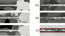 First, we want to report the changes in raw predictions caused by varying the image formation parameters. Therefore, the prediction difference between the default and the respective variation for the whole data set is visualized as boxplot in Fig. 3. The standard deviation of the distributions displayed in Fig. 3 can be seen in Table 1. From a first glance, it is apparent that propagating the centerlines from the default to the varied configuration leads to a decreased variance. This holds true for all variations when comparing the standard deviations. For a differing amount of denoising iterations of the ADMIRE algorithm, the variance is relatively low in the case centerlines are propagated. For sharper kernels, mean offsets are observed (\(\mu _{Bv40} =\) 0.054; \(\mu _{Bv44} =\) 0.101; \(\mu _{Bv49} =\) 0.094). The most considerable offset of the mean value with an amplitude of 0.167 is observed for the true stack variation with centerline propagation. When using true stack the standard deviation and therefore the variance of the prediction change is higher than with all other variations. An explanation for this behavior is that vessels at the slab edges may have the visual impression of being narrowed due to the sharp slab boundaries. A visual example of this effect is shown in Fig. 4. Analyzing different reconstruction kernels, the resulting variance in prediction seems to correlate with the sharpness of the kernel.
