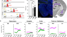 All imaging was completed using an Axio Scope A1 microscope (Zeiss; Thornwood, NY, USA). Regions of interest were identified via DAPI staining using a 10 × objective with the assistance of the Paxinos and Watson brain atlas63 and then imaged under a 40 × objective (actual magnification ~ 900 ×). Images were taken for both DAPI and FITC stains and later colorized and merged automatically using a custom macro in the ImageJ software with FIJI (NIH, Bethesda, MD). Due to tissue degradation occurring over the course of in situ not all sections or areas of potential interest were viable. As such, images were not able to be z-stacked reliably and, instead, were taken on a single plane. The following regions were imaged and counted: the prelimbic cortex (+ 3.72 to + 2.52 from bregma), the infralimbic cortex (+ 3.52 to + 2.2 from bregma), the lateral (+ 3.72 to + 3.2 from bregma) and ventral (+ 3.72 to + 3.0 from bregma) orbitofrontal cortex, the CG1 region of the anterior cingulate cortex (+ 3.72 to + 2.52 from bregma), and the CA3 region of the ventral hippocampus (− 4.3 to − 4.8 from bregma) (Fig. S6). Though the amygdalar nuclei were also of particular interest for their well-established role in fear learning, the aforementioned tissue damage tended to be particularly severe in this area. As such, we were not able to obtain a sample size large enough to include that region (a minimum of 6 viable images/region was required for a rat to be included in the statistical analysis of a given area).